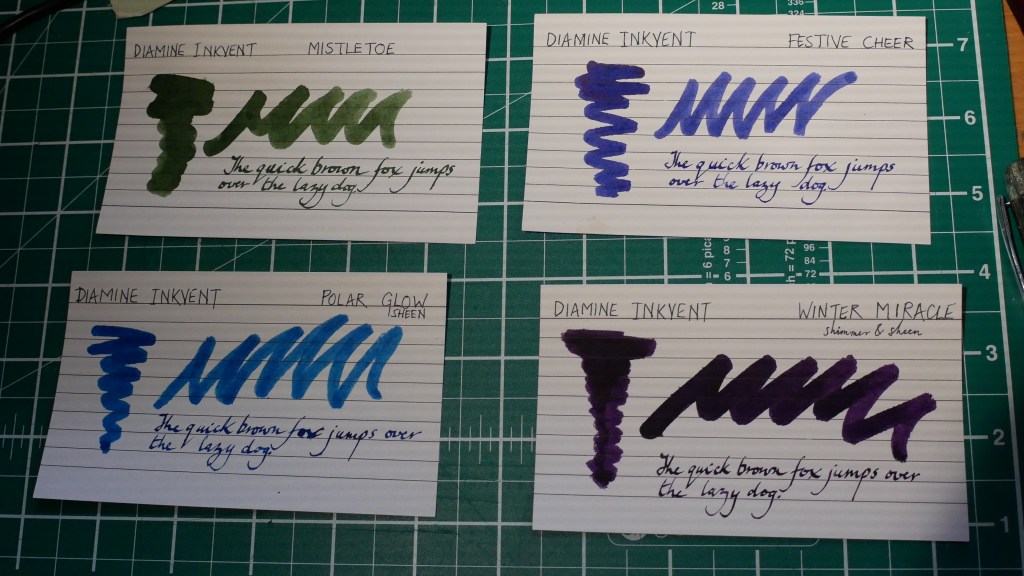 In this wider context, Diamine’s re-launch/re-issue of their Inkvent inks is really welcome. Collectively they were a real romp through the creative spectrum and some inks will stick longer than others as tastes further evolve. Some of these inks are real stunners that many of us hope will be around for years to come.