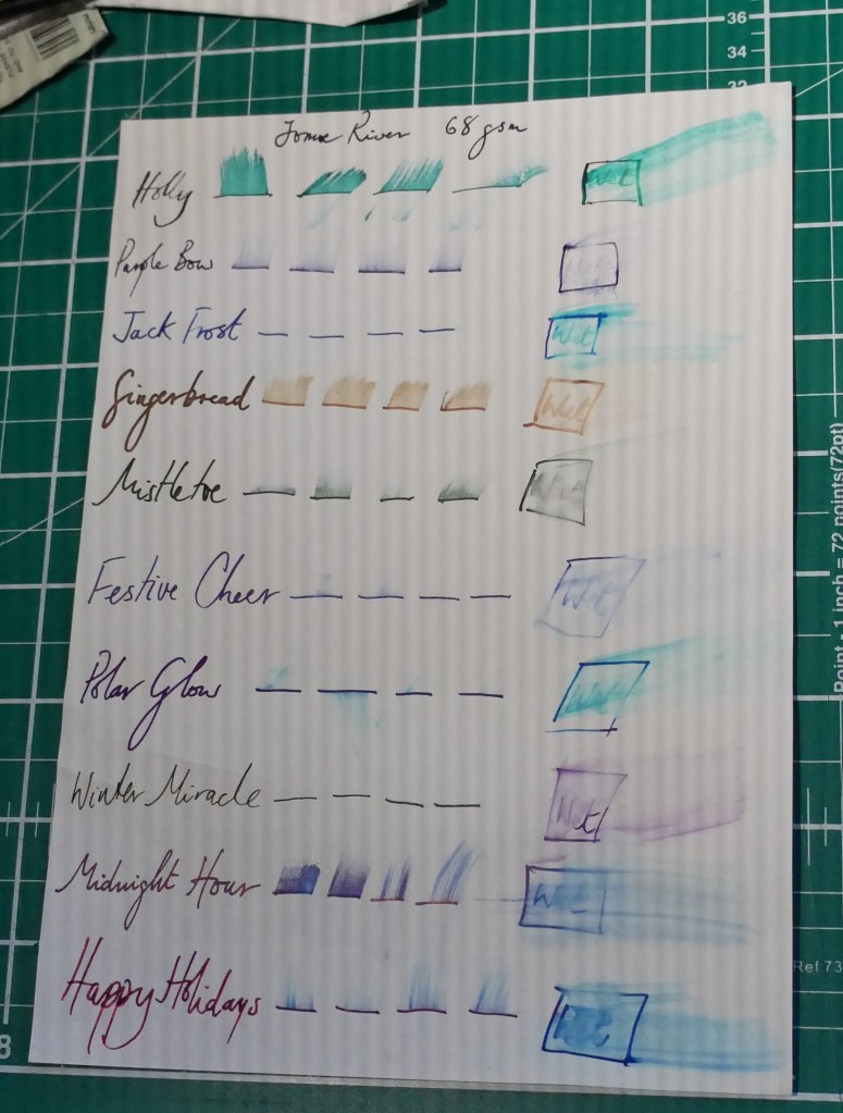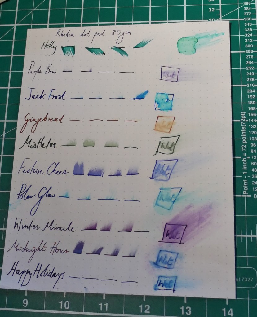 None of the ten inks tested here showed significant water resistance, most were quite saturated and some were and are (a humble opinion ventured here) quite stunning and ‘must-haves’. (By the way there are another 15 of the Diamine Inkvent inks.)