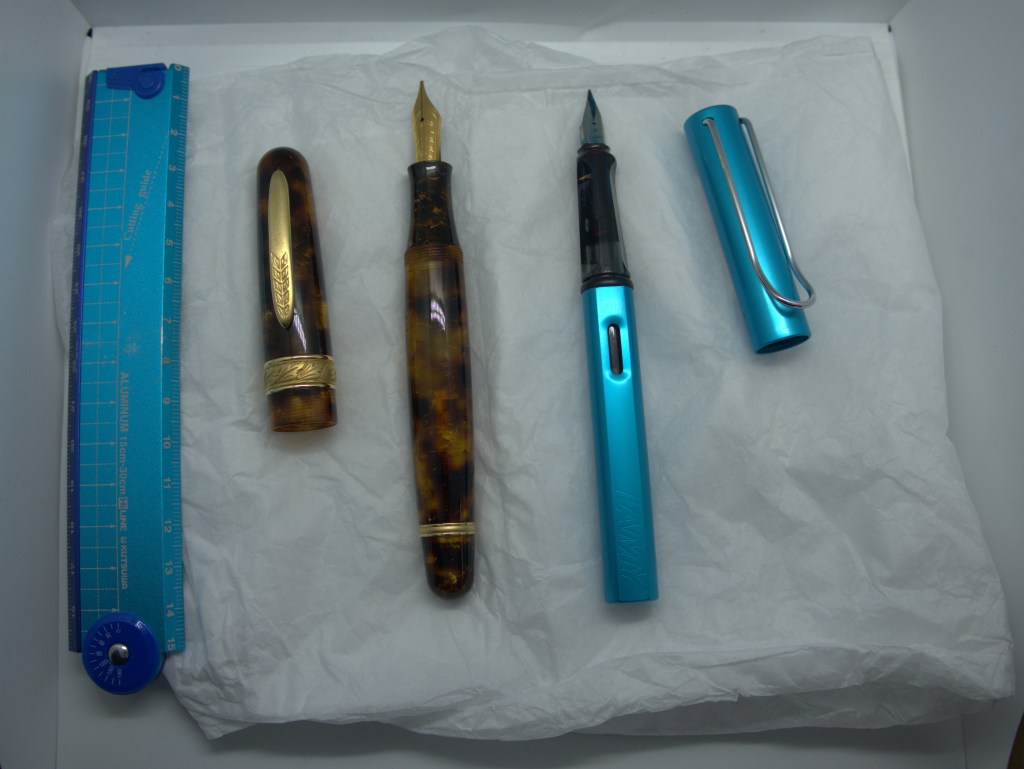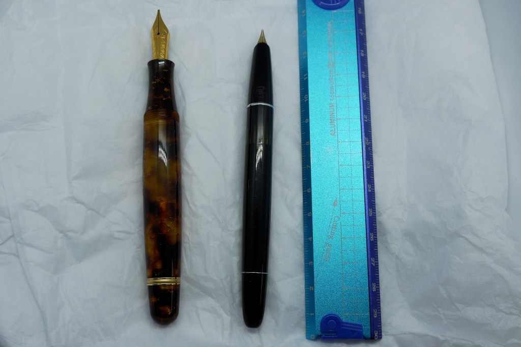 Whilst it is a big pen uncapped the Stipula looks fairly familiar and quite typical size-wise, even against the pen reviewer’s yardstick Lamy, or the more restrained classic form of an Aurora 88P dating from the 1970s.